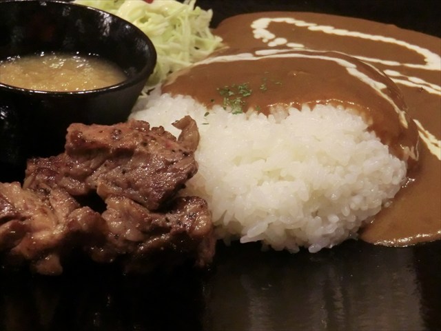 トッピングは一口ステーキ50グラム。