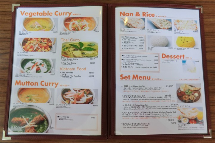 カレーは4種類、辛さも5段階から選べ、ライスかナンのどちらかをセットに出来ます。