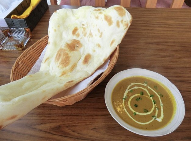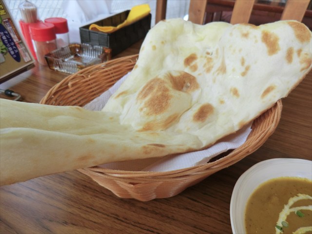 ふっくらモッチリとした食感に、かすかな甘みとバターの風味がとても美味しいナンでした。