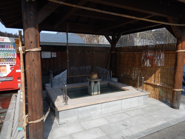 足湯ではサイクリスト達が一服中でした。