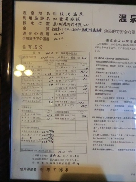 温泉成分表は休憩スペースの脇に掲示。