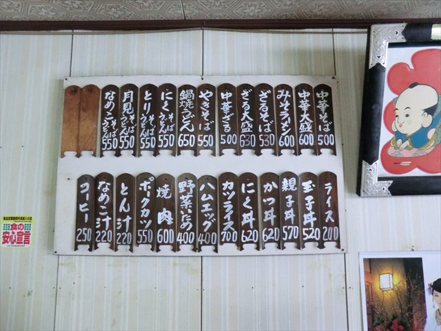 テーブルにはメニュー表が無いので、壁に貼ってあるメニュー札を見て注文。