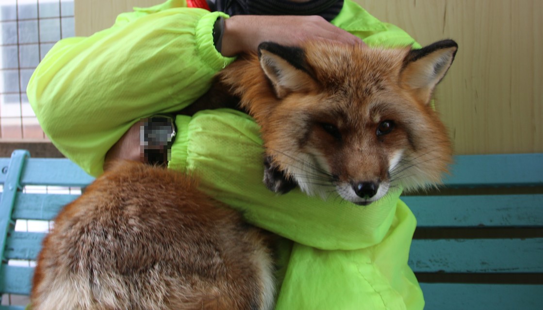抱っこ専門のキツネだから大人しいのだそうで、園内のキツネに触ろうとすると噛まれるそうな。