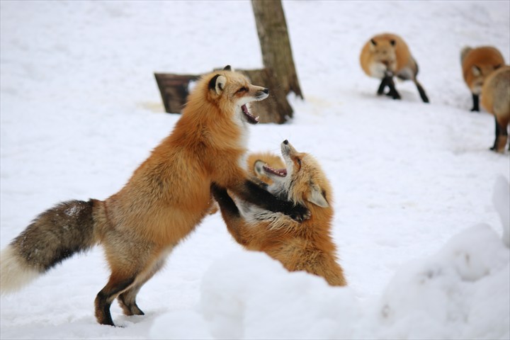 キツネたちは冬毛ですっかりボリュームが出ています。