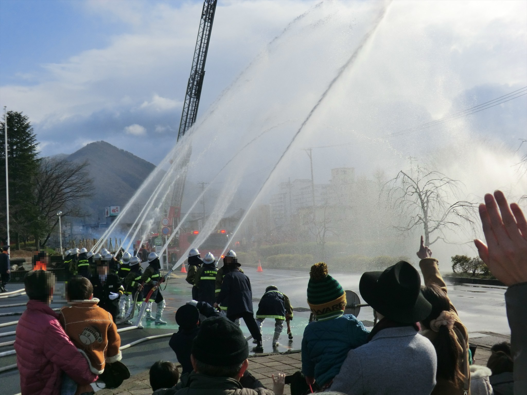 雪もちらつく中、さすがに立ち上がって眺めるには寒かった。