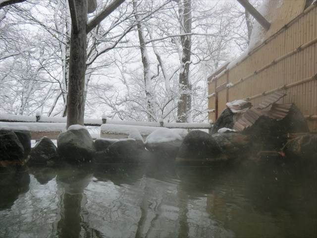 湯温は内湯、露天風呂共に43℃と冬場に嬉しい熱めの設定。
