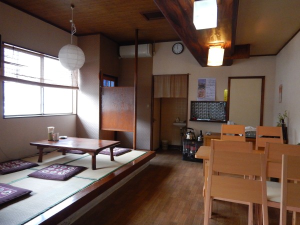 店内はワンフロアで、畳敷きの小上がりに2卓とテーブル席が2卓。