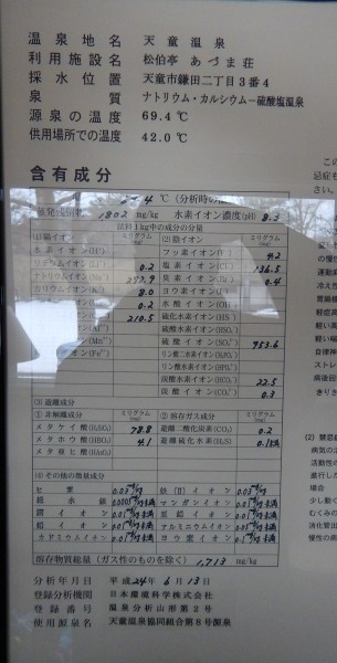 加水:夏季のみ 加温:有り 循環ろ過:循環&かけ流し 消毒:塩素使用