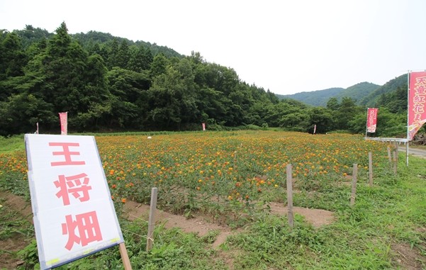 何面か畑はあるようで、どこでも紅花が列を成して栽培してあります。