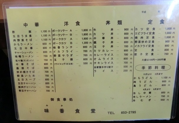 中華、洋食、丼物、定食と分けられており、なかなか豊富なメニューです。