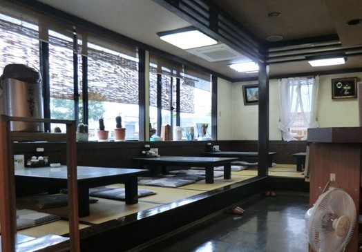 一つのフロアに小上がりテーブルが8人分に、椅子のカウンター席が7人分。