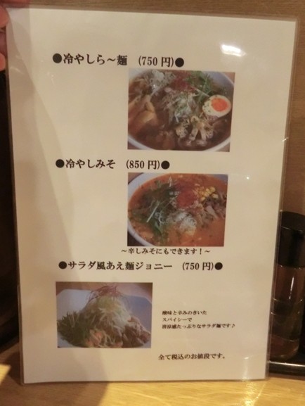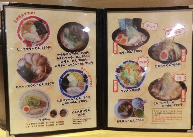 メニュー数はそれほど多くはありませんが、醤油に味噌、塩とスープが揃っているのは嬉しいところ。