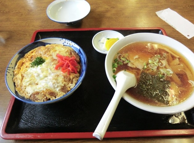 今回はお腹も減っていたのでカツ丼と半ラーメンのセットを注文しました。