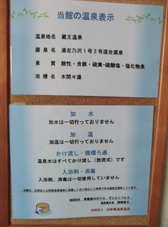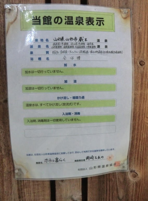 こちらのホテルの温泉表示は露天風呂に貼ってありました。