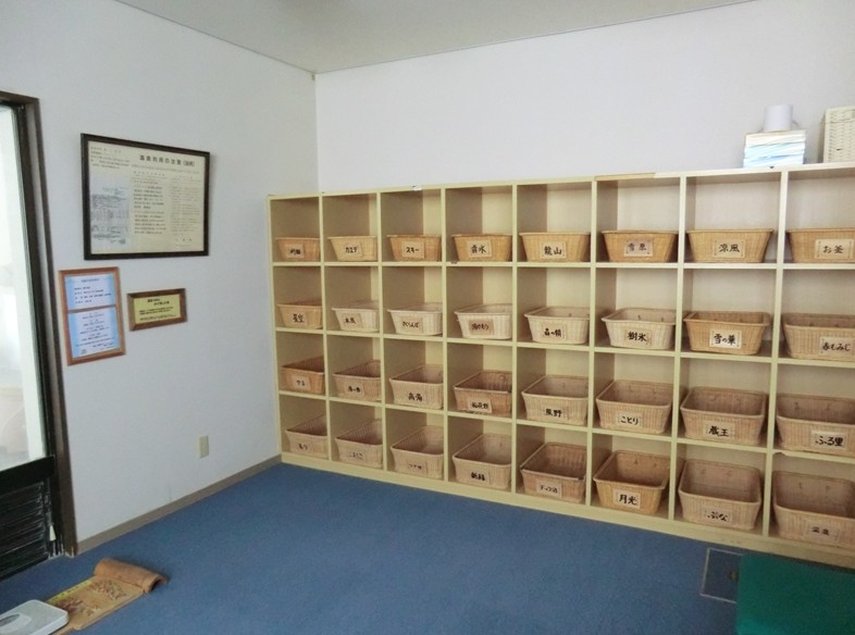 脱衣かごには蔵王ゆかりのプレートが貼られており、どのカゴを利用しているか覚えやすい。