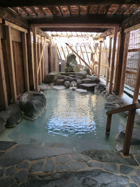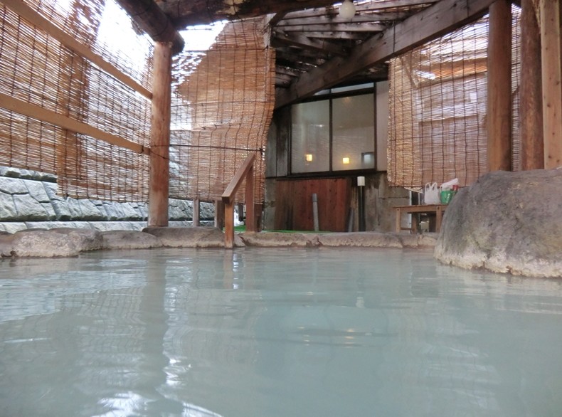 浴槽には薄く白く濁ったお湯が湛えられています。