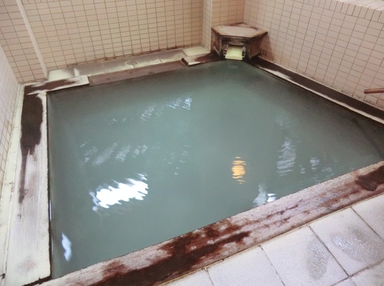 薄いグリーンに見える透明なお湯で、底に沈殿しているの湯の花がよく見えました。