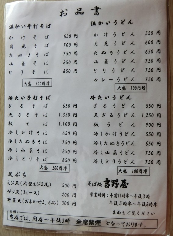 本日は天童市にある吉野屋というそば屋で昼食。