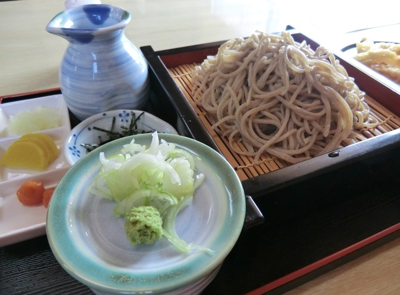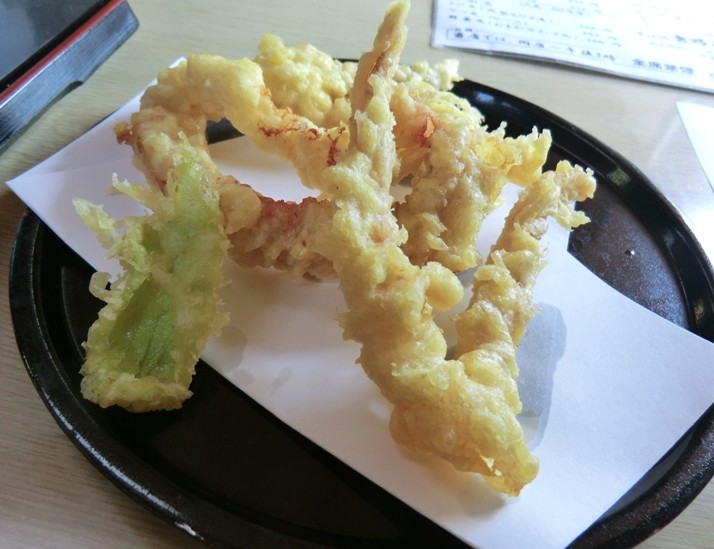 本日はざるそばとゲソ天を注文。