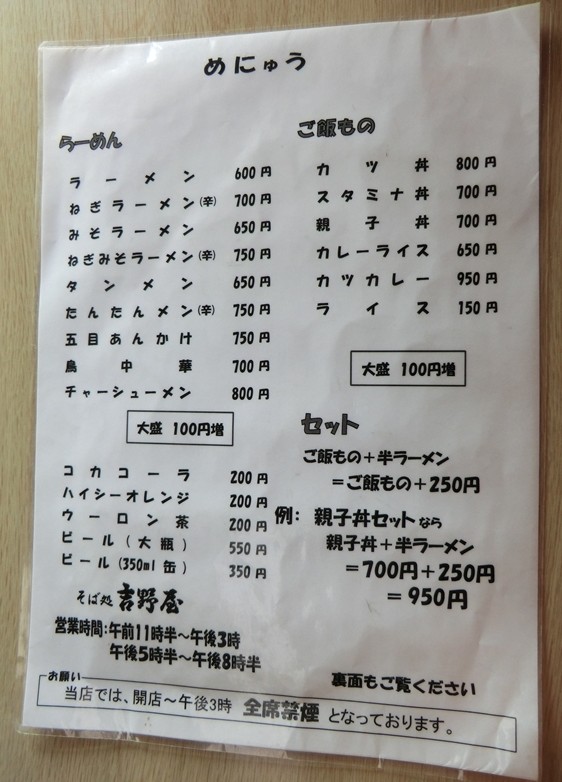 主なメニューはそばとうどんに、山形のそば屋らしくラーメンですね。