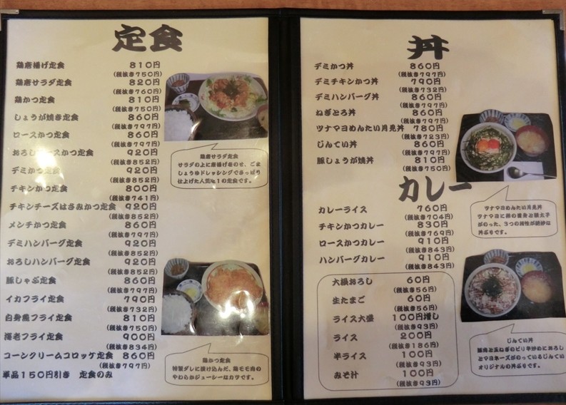 揚げ物系を中心に肉料理の定食が豊富ですね。