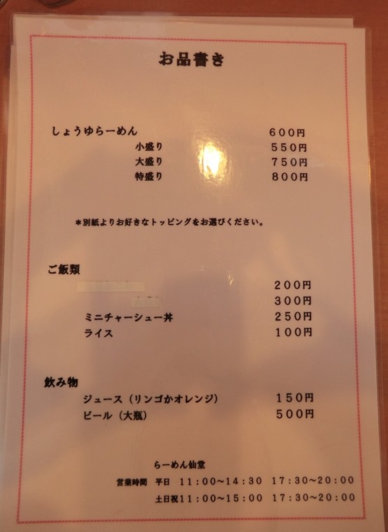 らーめん仙堂さんというお店です。