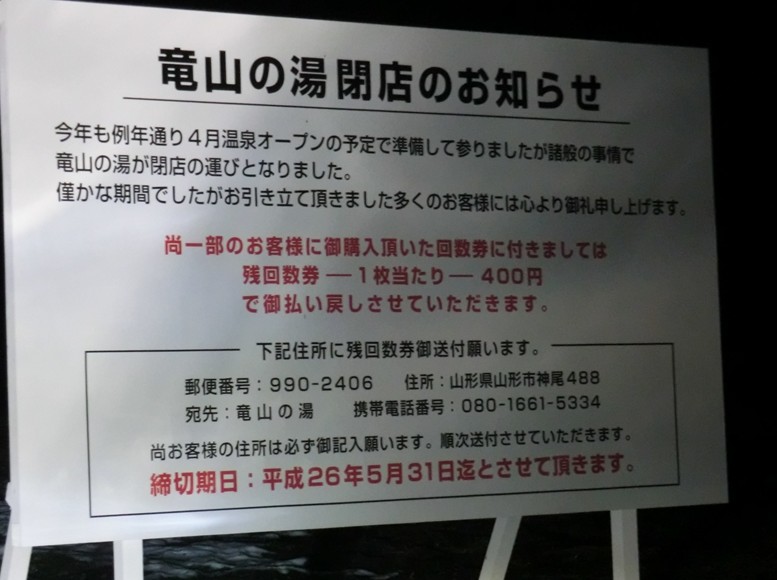 ------2016年3月26日追記 竜山の湯廃業のお知らせ-------------