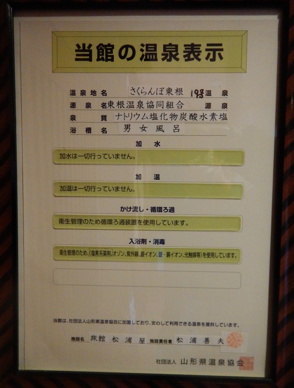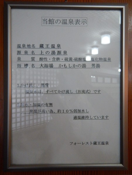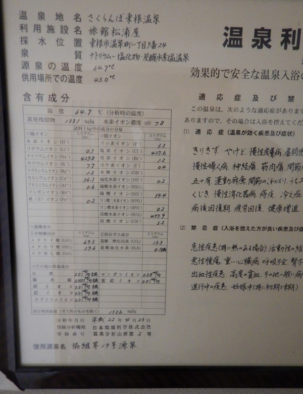 こちらが温泉表示に成分表。