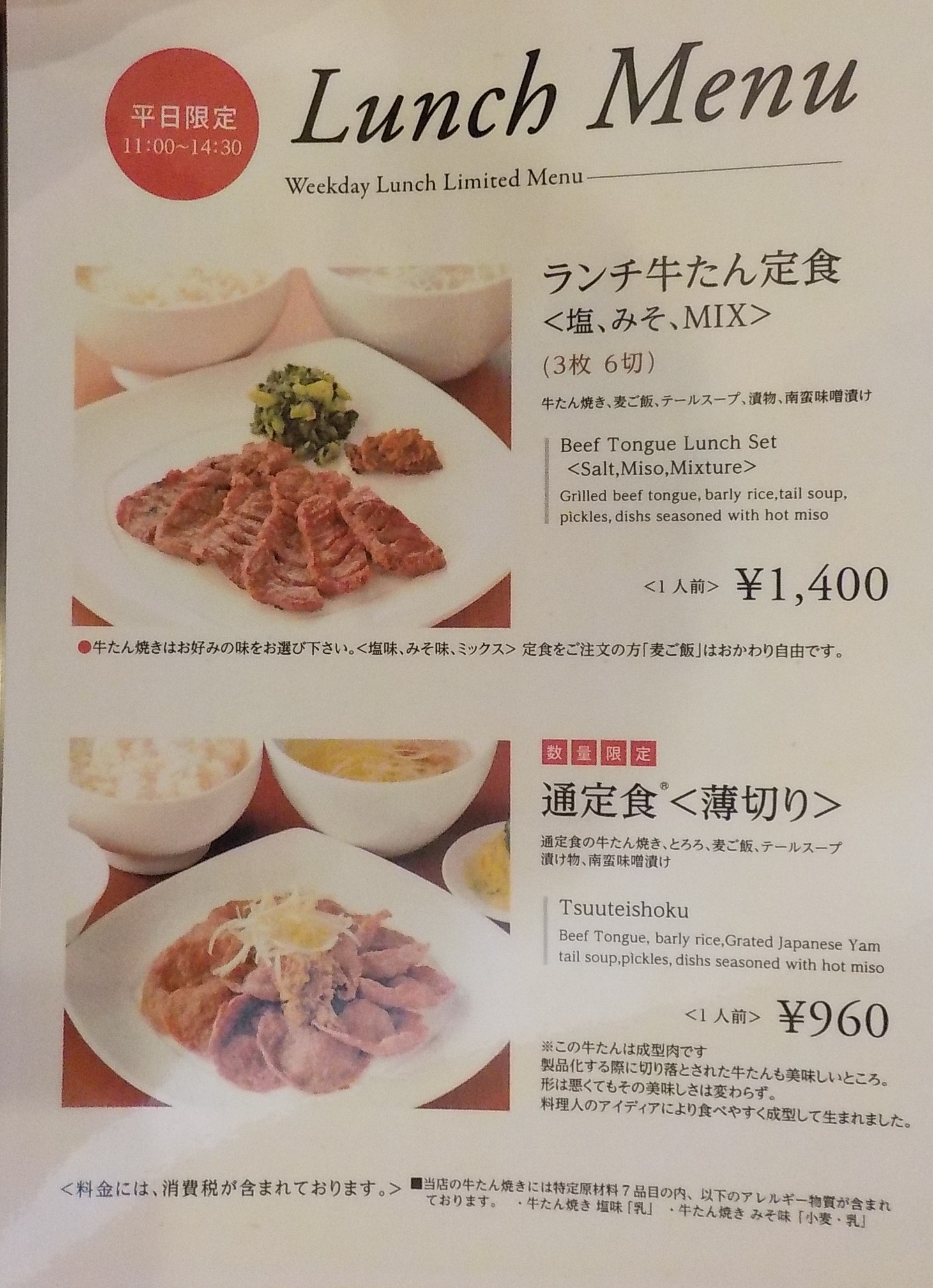 ランチということでお安く牛たんを頂けるわけですが、それでもやはりそれなりのお値段はしますね。