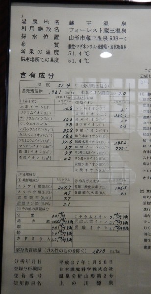 こちらが温泉表示と成分表。