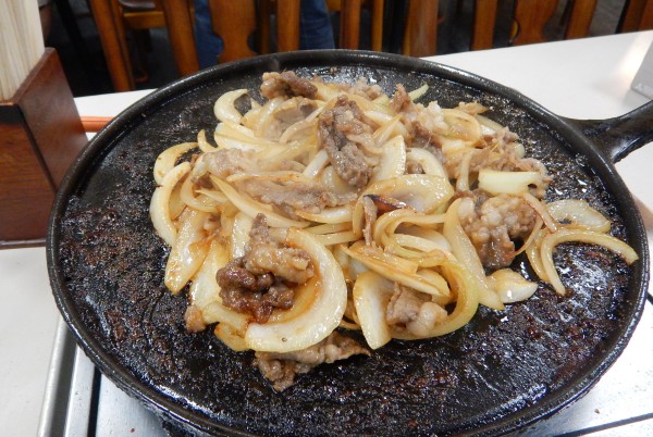 キムチをつつきながら待っていると、ついにバラ焼きが登場。
