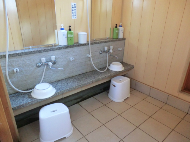 本日のお湯は白く濁っており底のすのこは見えません。