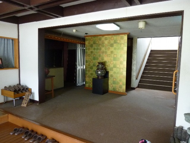 中に入ると女将さんらしい人がラウンジを掃除中。
