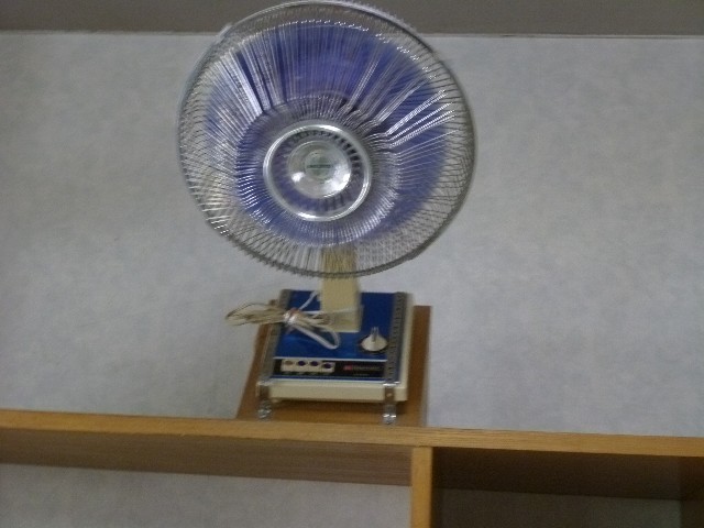 ちょっと無理やりぎみに取り付けられた扇風機がお出迎え。