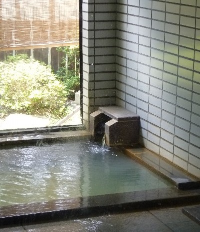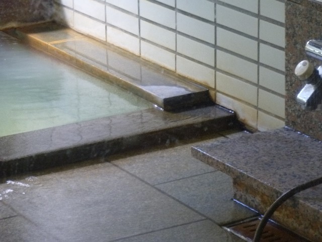 隅のほうには打たせ湯、圧力湯、泡風呂もあった。