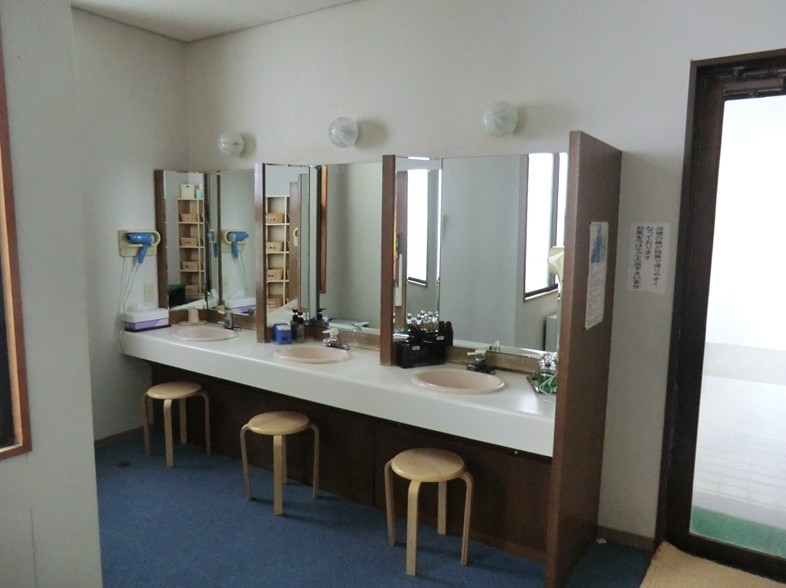 温泉のおかげで浴室は暖かですが、換気扇の効果もありモクモク感はありません。