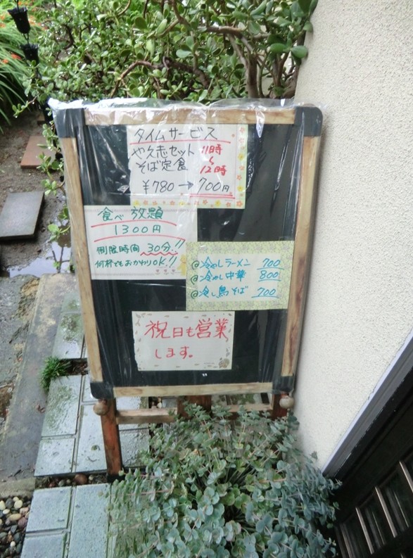 入り口にはお店のお勧めメニューの看板有り。